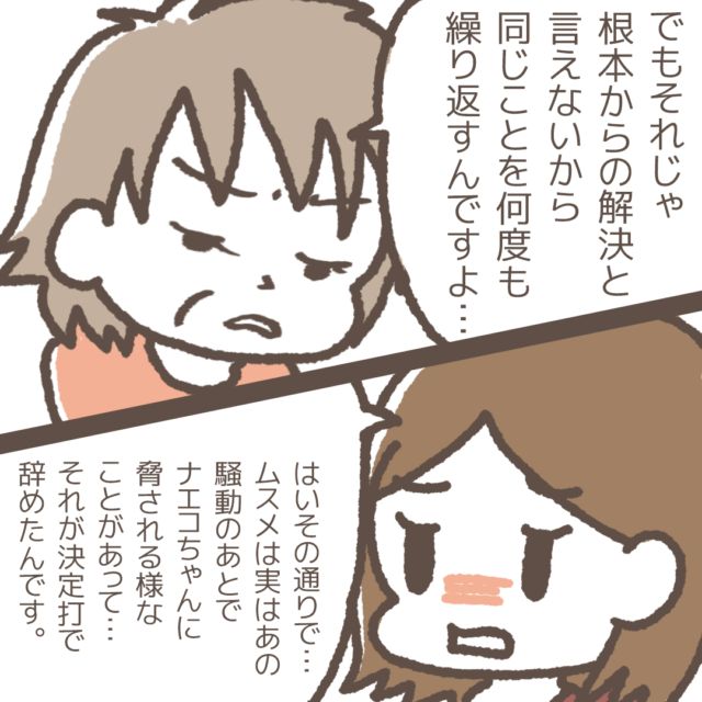 ナエコさんが娘ちゃんにしていたことに心底驚いている米田先生。ナエコさんは米田先生の前では反省したフリをしていたのですね・・・。裏表がありすぎて怖いです。