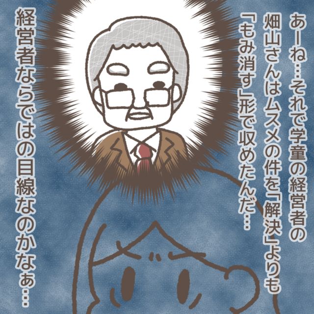 米田先生の話しを聞いて、娘ちゃんのトラブルのときの畑山さんの対応を思い起こして納得する赤井ふみさん。