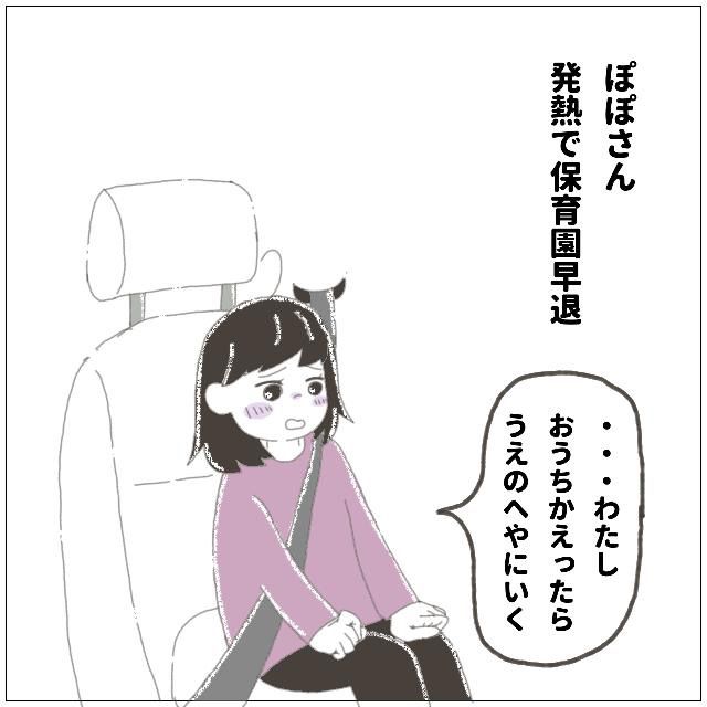 長女ぽぽちゃん、次女びびちゃん、長男ももくんの3人きょうだいのママであるあずきなこさんから、ぽぽちゃんに感じた成長のお話です。お熱で保育園を早退したぽぽちゃんは、帰宅中の車の中で「おうち帰ったら上の部屋に行く」と言いました。その理由は・・・。