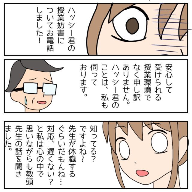 そりゃそうですよね~。先生が休職するくらいだもんね・・でも・・だったら対応遅くない?