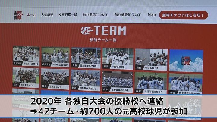 このプロジェクトには、当時出場するはずだった、2020年の独自大会で優勝した全国の高校のうち、42チームおよそ700人の元高校球児から参加表明がありました。