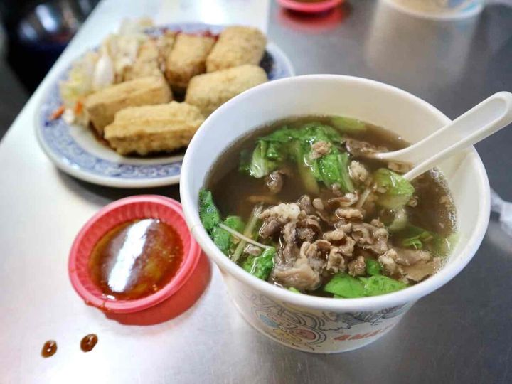 台北から約1時間でアクセスできる宜蘭県の「羅東夜市(ルオドンイエシー)」は、台北ではなかなか味わえない、宜蘭の特産品を使ったグルメを味わえます。中でも大行列ができるお店が「阿灶伯(アーザオバイ)」です。看板メニューは、當歸羊肉湯(薬膳羊肉スープ)と臭豆腐。スープにはヤギの肉がたっぷりで、食べるうちに身体がポカポカしてきます。臭豆腐は、外側はサクッと中はふわふわかつほろっとしていて食べやすいです。