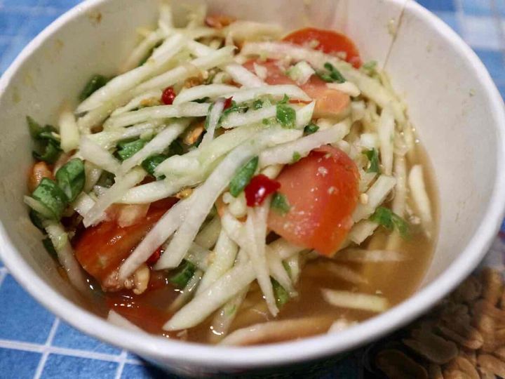 台北郊外にある「樂華夜市(ルーフアイエシー)」は、コスパが高い美食が豊富だと地元民に人気の夜市。「純檸檬泰式涼拌木瓜(パパイヤサラダ)」を販売する「官記(グアンジー)」は、テイクアウトのみにもかかわらず常に行列ができている人気店です。熟す前の細くカットしたパパイヤが使われたサラダは、シャキシャキ食感にエスニック風味の辛さと酸味のあるタレが絡み合う、クセになる味わいです。