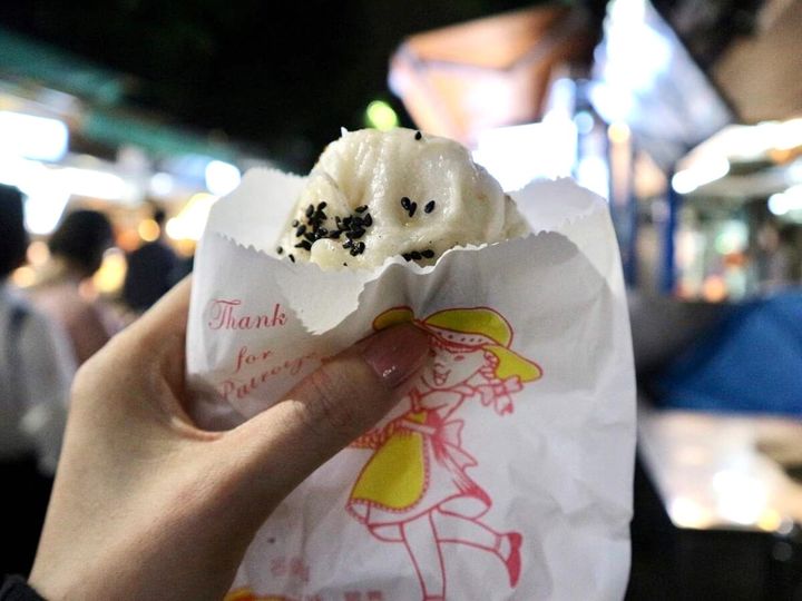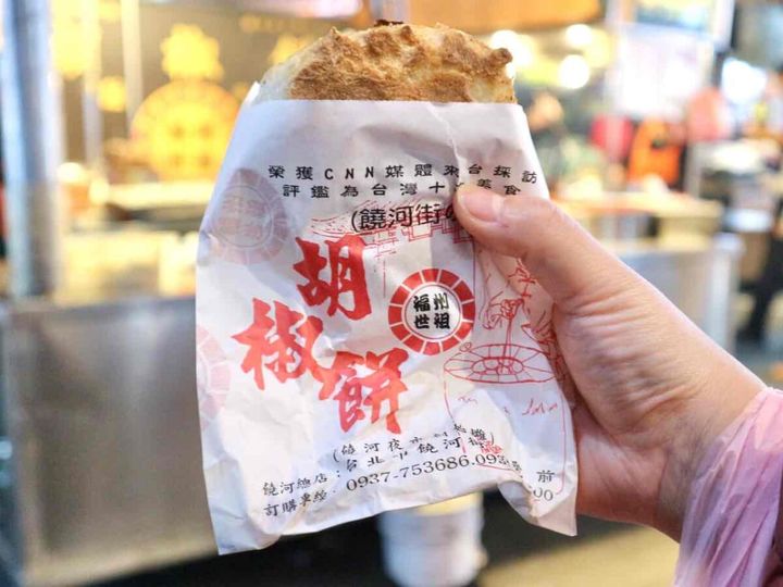 まずは台北MRT松山駅前から広がる「饒河街觀光夜市(ラオフージエグアングアンイエシー)」から。入り口を入ってすぐの場所で行列ができている屋台「福州世祖胡椒餅(フージョウシーズーフージャオビン)」は、ミシュランガイド台北のビブグルマンにも掲載されたお店。香ばしくパリッとした皮の中に、胡椒がきいたジューシーな豚肉あんがたっぷりと入った胡椒餅は、この夜市でぜひ食べてほしいグルメです。