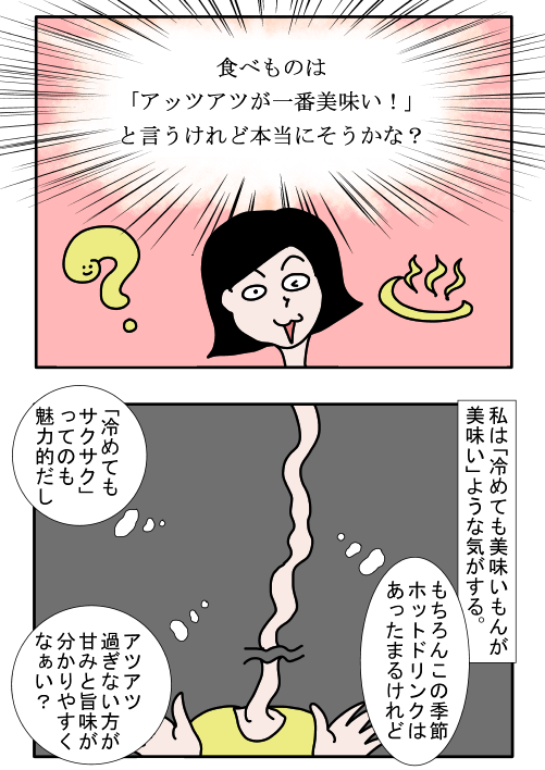 アツアツな物や冷めている物、それぞれに良さがあるのではないでしょうか。投稿元のコメント欄には「私も、冷めた物好きだよ!」「あ。私熱々じゃなきゃダメな人です」など、様々な意見が寄せられていました。