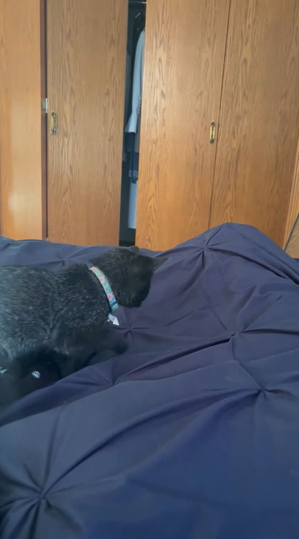 ご紹介するのは、ベッドの上にいる愛猫の姿を捉えた映像です。 子猫の『クリープ』のある日の様子を、飼い主さんは撮影していました。
