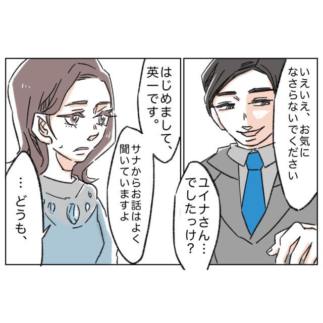 「ユイナさん・・でしたっけ?はじめまして、英一です。サナからお話はよく聞いていますよ」と言われ、「・・・どうも」と答えたユイナさんは、