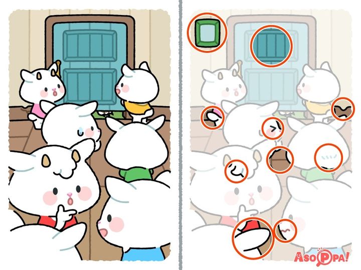 左右で違うところが10個あります。どこにあるかわかりますか?