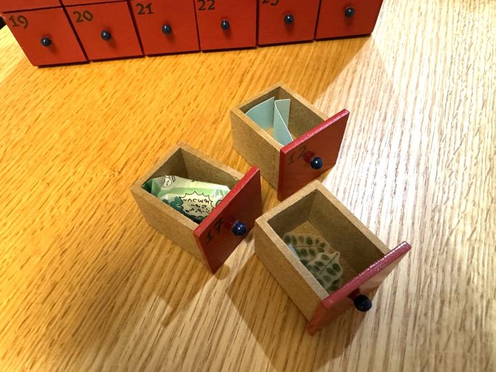 ちなみに、うちにあるカルディのアドベントカレンダーは、木製もフェルト製もひとつひとつに入れられるサイズが小さいです。
