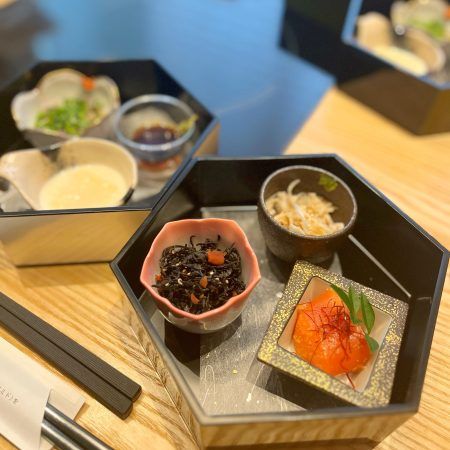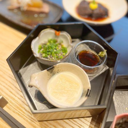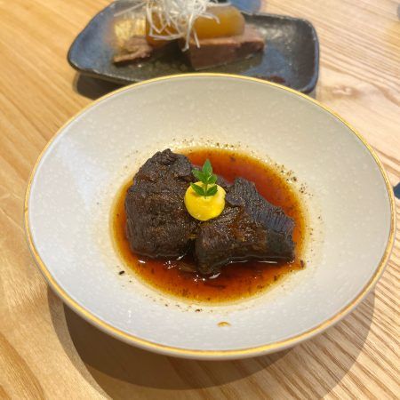 銀座店限定で楽しめるコースは、既存店でも人気の「牛ほほ肉の甘煮」や、「牛の酢もつ」、博多大宰府名物の「梅ひじき」など一品料理も少しずつ並びます。