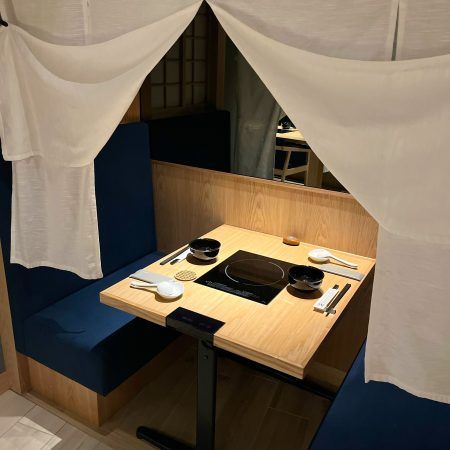 地下に降りていくと、カーテンで仕切られた席が並び、もつ鍋屋さんとは思えないまるで高級旅館のような雰囲気です。