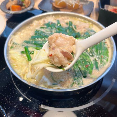 臭みは全くなく、ほどよく脂がのった牛もつはぷるぷるで食べ応えのあるサイズ感でした。