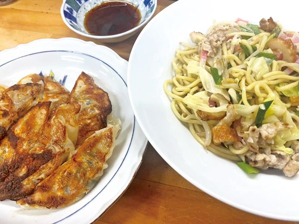 今回は少し珍しい焼きちゃんぽん(税込600円)と餃子(税込350円)を注文しました。