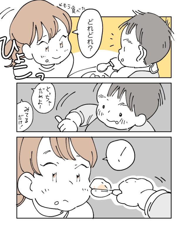時々、弟のへうくんに食べさせるお手伝いをしていたくうちゃん。