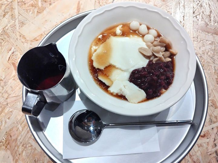 日本式の「日式豆花」は豆腐に塩が入っていて若干の塩味を感じる味わい。 台湾式の「傳統豆花」は台湾の豆腐を再現し硬めで豆の風味を感じるとのこと。 ここは本場の味を!と「傳統豆花」(690円)を注文。