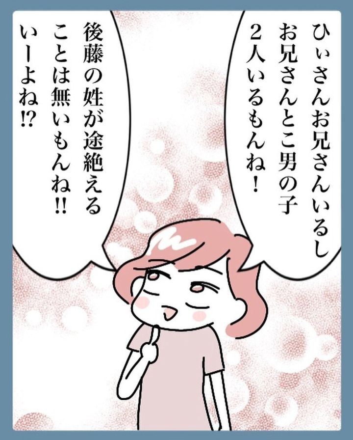 ひぃさんはお兄さんがいるため、ひぃさんの苗字が途絶えることはないと考えるみぃ子さん。反対にみぃ子さんは姉妹で、どちらも苗字が変わると自分の姓を継ぐ人がいないといいます。ひぃさんは、自分がみぃ子さんの苗字に変えることも考えますが、引っかかる部分があるようです。