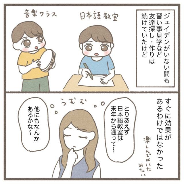 ジェイデンくんママのベッキーさんと連絡先を交換したものの、お互いの一時帰国のすれ違いでなかなか会うことができないまま1ヶ月以上経ってしまい、再度連絡し辛く感じてしまったみゅこさんでした。