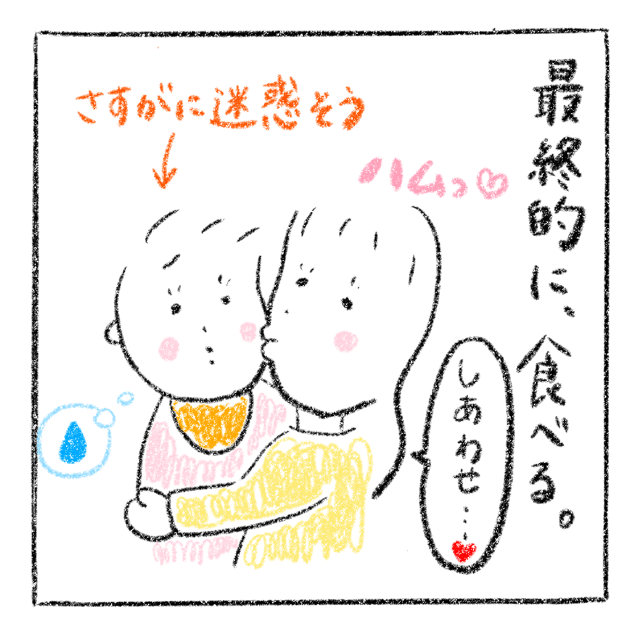 見つめるだけでは満足できずに最終食べてしまう母です。