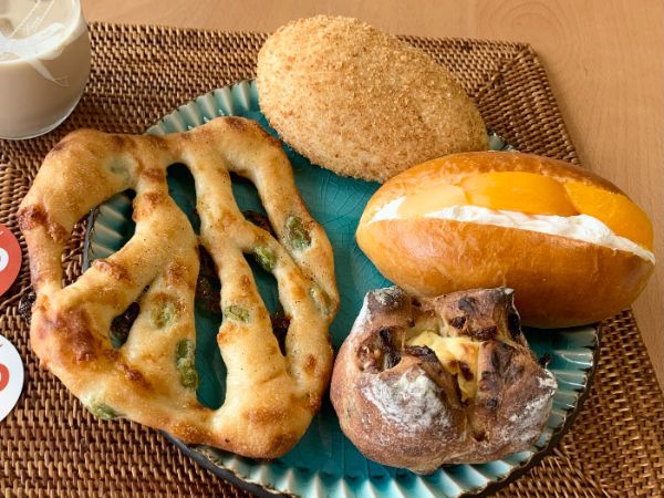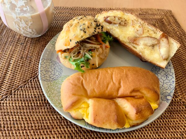こちら以前購入したパンたちをご紹介。 甘めな中にスパイシーさがあり子どもも好きな味の人気No. 2の焼きカレーパン(右奥)、ほんのり甘いクリームチーズがレーズンとうまく合っておいしかったもっちりハードパンのレーズンノア(右前)は取材時にも販売されていましたが、フルーツサンド(右真ん中)や枝豆チーズ(左)は販売終了とのこと。 新商品が多いと同時に販売終了した商品でも復活商品もあるそうなので、わたし個人としては、お酒のおつまみにもぴったりでとてもおいしかった枝豆チーズを復活希望です!