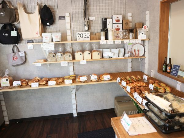 店名の「PAO」はポルトガル語でパンの意味で、古民家を再生活用し2023年5月にオープン。以前クラフトビールづくり工程を詳しくご紹介したGAMO4 BREWERYさんの姉妹店で、城東区で障がい者の就労支援を手がける特定非営利活動法人「燦然会(さんぜんかい)」さんが運営し、利用者さんたちが商品の補充やパン作りの補助などを行っています。GAMO4 BREWERYさんで作られたお弁当もレジ前で販売されていました。