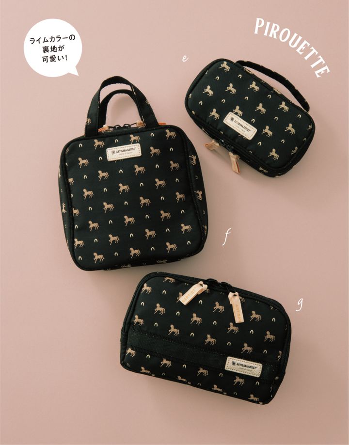 「PIROUETTE」ハンディ・メイク・ドレッサー・ミニ、タテ型収納のスクエアポーチ、スロープシェイプ・ポーチ