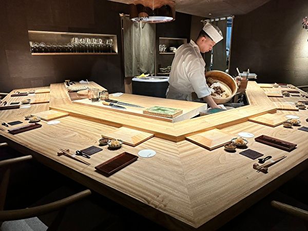 店内は照明の明るさを抑え、薄暗くし、隠れ家感があります。重厚かつ美しい木目のカウンターで、職人さんの手元を見ながら旬の料理が楽しめます。