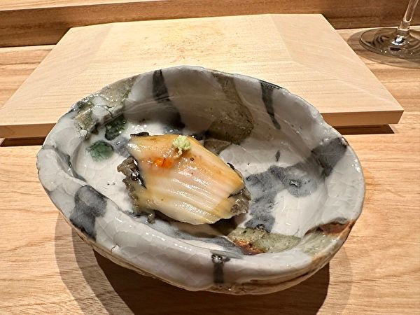 なんと贅沢!蒸し鮑の中には、たっぷりの雲丹が!口福な気分満開です。