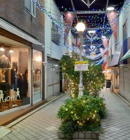 近くの商店街もライトアップしています。この時期は、クリスマスフェアや抽選会などが行われる所もあるようで、思わず立ち寄りたくなりそうです。