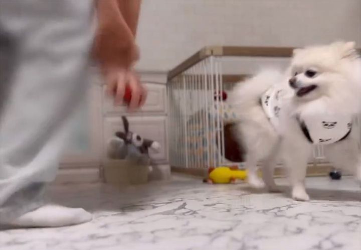 どうやら、このポメラニアンはおいかけっこが大好きみたいです!!