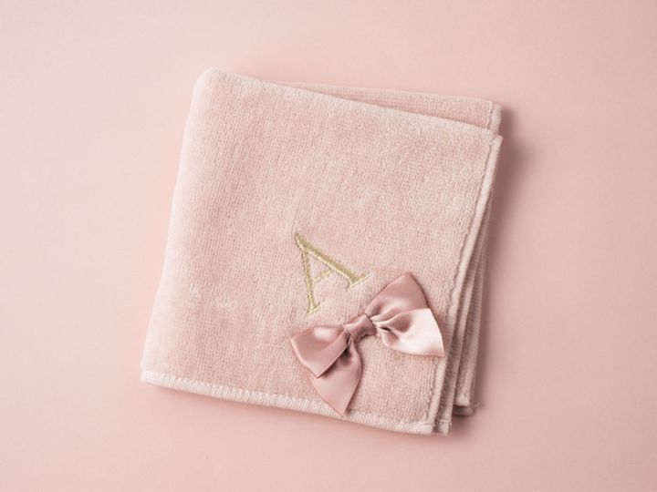 刺繍とリボンが上品なタオルハンカチは、推し仲間へのギフトにもおすすめ。使うたび推しのイニシャルが目に入る!
