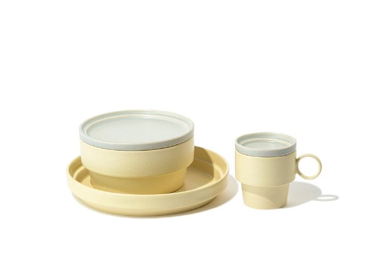 スタッキング可能ですっきり収納できる。全7型あり、ほかにピンクなど7色が揃う。プレート、L¥3,410 M¥1,980 S¥990 ボウルL¥2,970 マグ¥1,980(スタッキングテーブルウェア/ラウンドロビン)