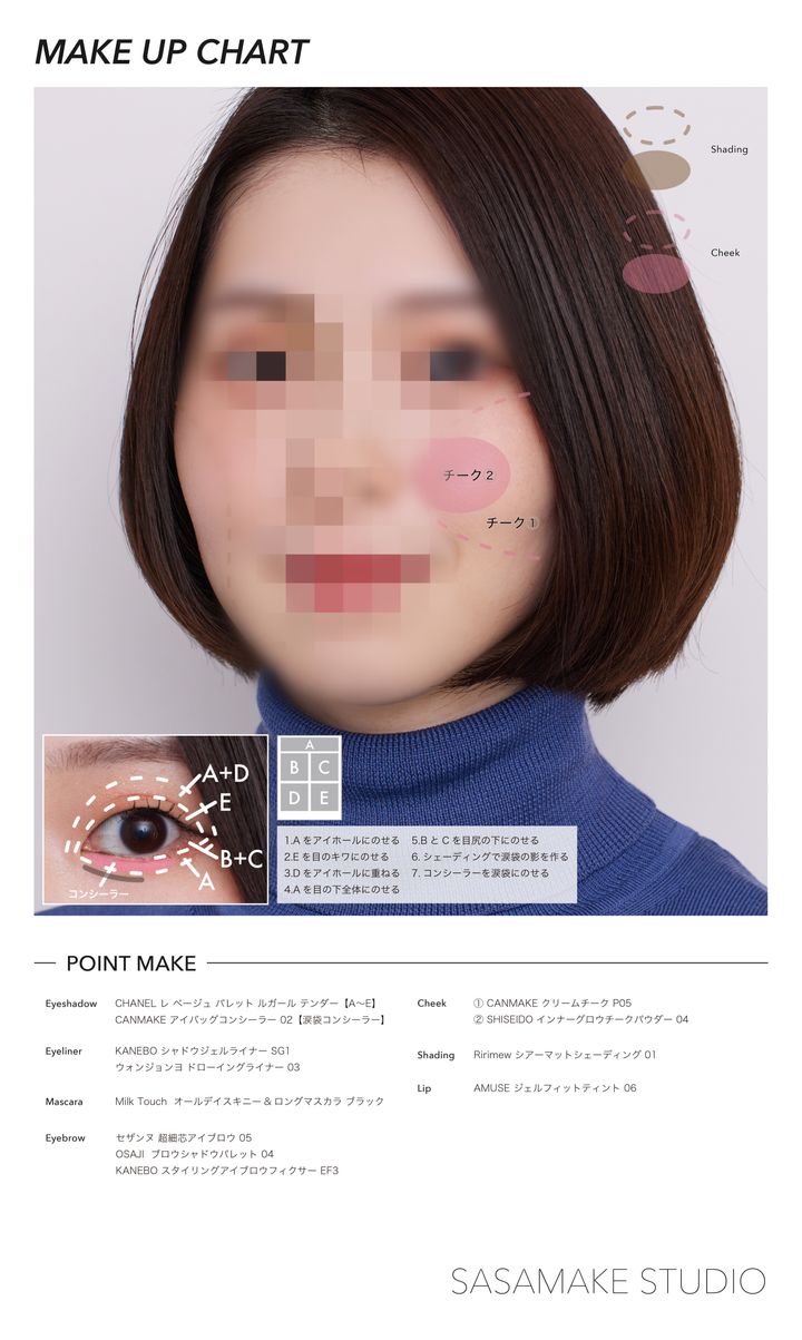 フェイスチャートには使用したコスメを全部書いてくださり、メイクのポイントも書いてもらえるのであとから動画と合わせて見返せます♪