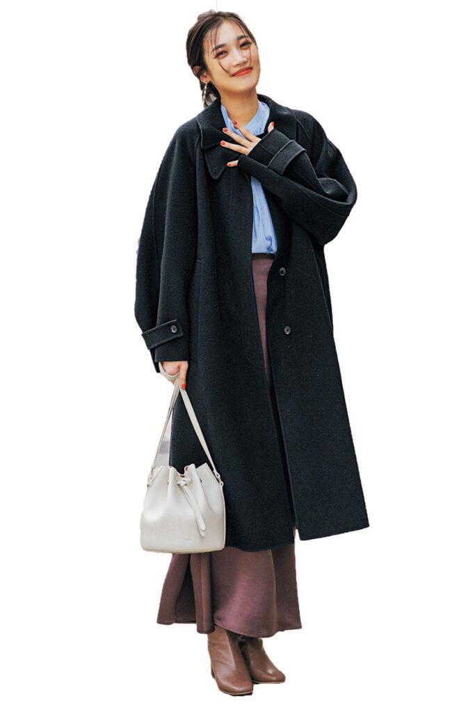 5.いつものロングコートも抜け感が生まれて華やか見え