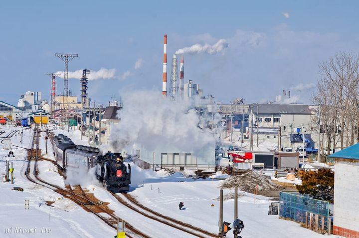 釧路と聞けば、大自然のイメージがありますが、町は製紙工場の香りがしています。冬になると大好きな蒸気機関車が走る町です。列車の名前は「SL冬の湿原号」。