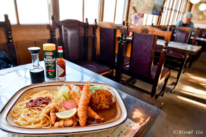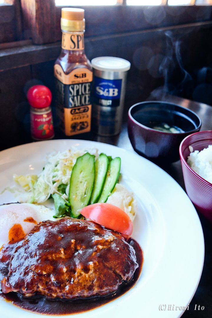 ラーメンから、洋食まで幅広いメニューがそろっています。「停車場ランチ」は、豪華なハンバーグでした。