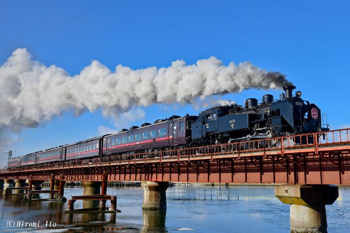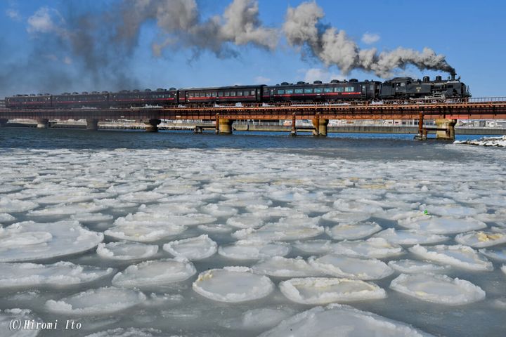 寒い朝、釧路の町を出発した蒸気機関車が渡る釧路川でも、蓮葉氷が浮かぶことがあり、鉄道ファンを楽しませてくれます。