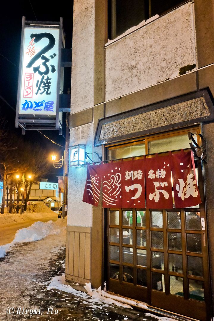 釧路の町で、必ず食べたいのが「つぶ焼き」。釧路の飲食街の一角にある何年も続く老舗のお店「かど屋」でいただけます。