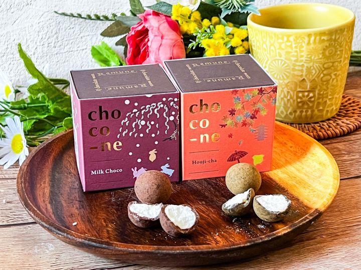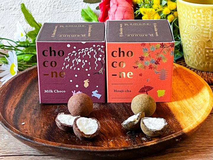 「choco-ne(ショコネ)」は、甘酸っぱいラムネ菓子を、口どけの良い濃厚なチョコレートで包み込んだ、チョコレートとラムネの専門店「リリオンテ」の看板商品。ラムネとチョコという組み合わせが斬新な新感覚のスイーツです。