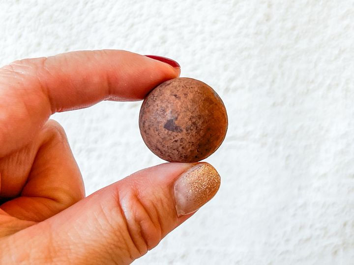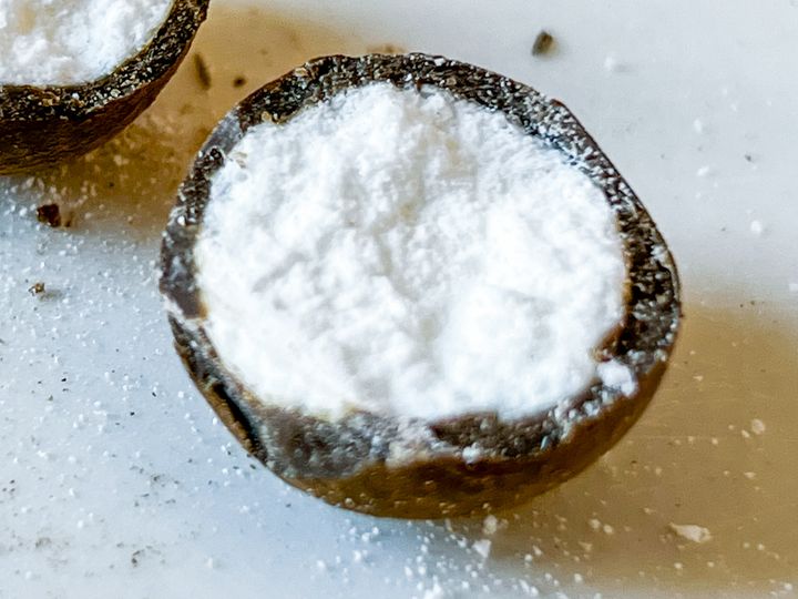 個別包装を開けると、中からはまんまるい「ショコネ」が登場。一口サイズで、「ミルクチョコ」には、チョコレートの周りにココアパウダーがまぶされているようです。