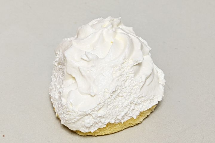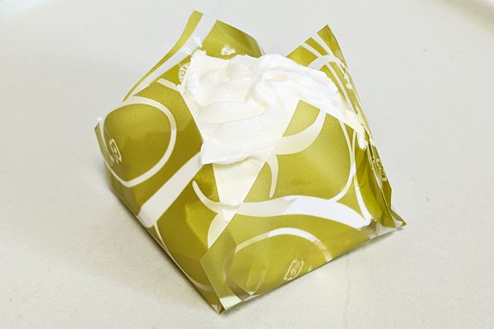 シートを取ってみると、クリームの下に少しだけスポンジがあるのがわかります。とはいえ、クリームがドーンと乗っていて、インパクト大!