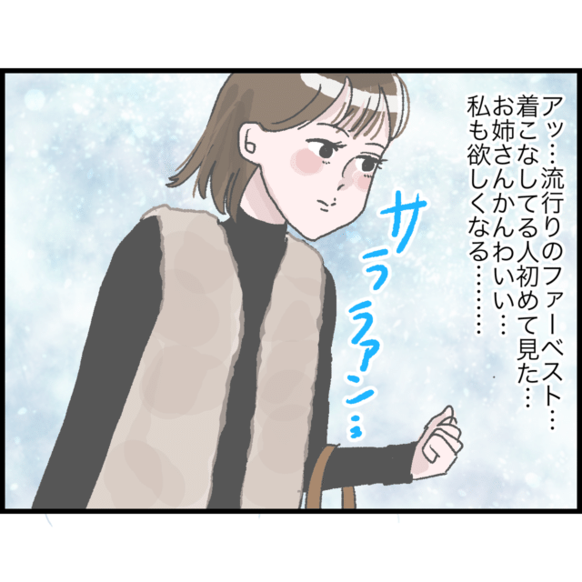 流行りのファーベストを着こなしているかわいい女性とすれ違うと、しおさんも欲しくなって・・・
