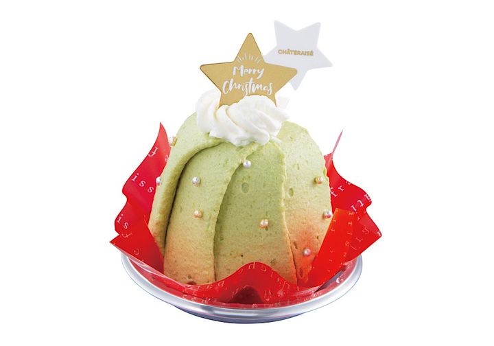 まず紹介するのは、クリスマスツリーをイメージして作られた「ピスタチオのモンブラン」。ころんとした見た目が愛らしく、ピスタチオグリーンの鮮やかな色合いが華やかで目を惹きますよね。
