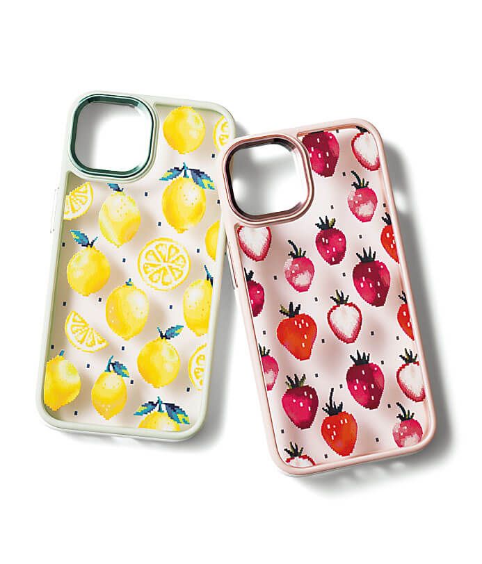 ハンカチで人気の「ストロベリードット」と「レモンドット」がスマホケースに! 色鮮やかでチャーミングなモチーフは、誕生日などのギフトにも最適です。