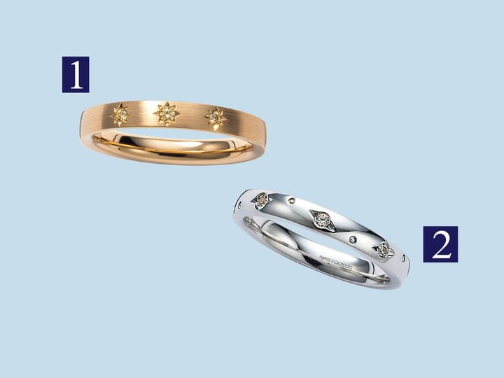 2 ホワイトゴールドの地金にあしらわれたダイヤは、ベージュの色合いが際立ってポイントに。