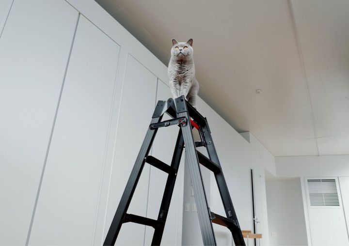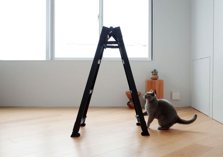 今日はお片付けの日。待ちに待った脚立の時間です。モチャも登ったり降りたり、大忙し。
