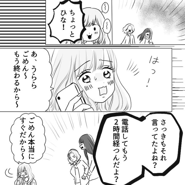 3. 遊んでるのに彼氏と電話し続ける友だち…注意したらまさかの返事!?