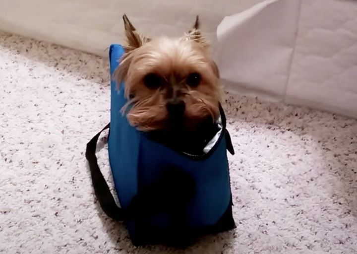 犬「ここに住むワン!」なぜかランチバッグの中が気に入っちゃった。