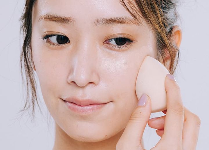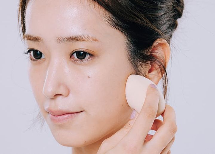 ▶水を含ませたスポンジでトントンと塗ると、薄くフィルターをかけて自然で美しいツヤ肌に仕上がる。