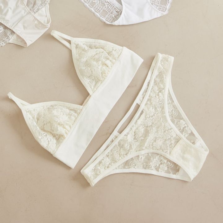 白レースブラ 15,400円、同ショーツ 11,000円/ともにランジェリーク(カドリールインターナショナル)
