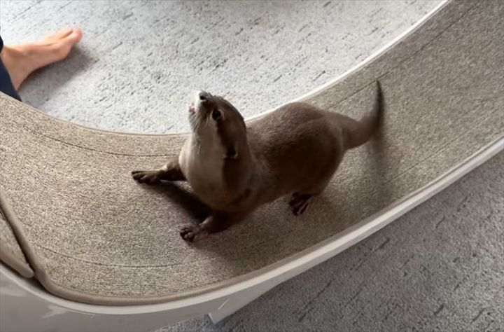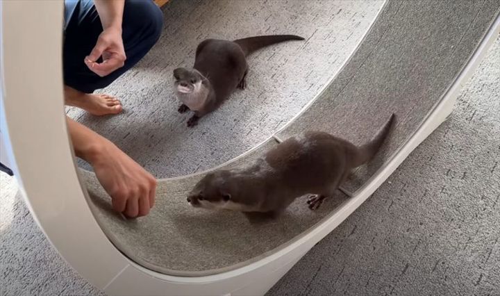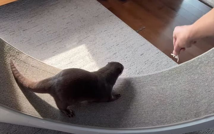 カワウソの誕生日にキャットホイールをプレゼントした飼い主さん。 見慣れる遊具に最初は警戒していましたが、時間が経つにつれて慣れていったようですよ!!